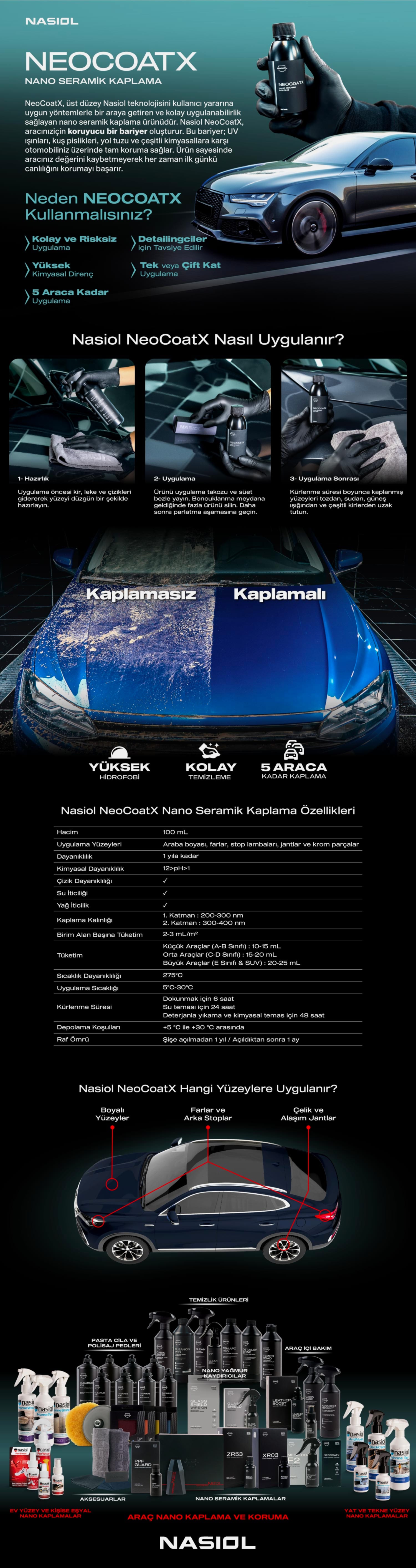 Nasiol NeoCoatX Araç Nano Seramik Kaplama Ve Boya Koruma-100 mL-1 Yıl Etkili-5 Araca Kadar Kaplama